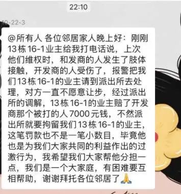 今年2月,四川達州的業主,還眾籌過醫藥費。維權時,有個業主和開發商發生肢體衝突,最終賠了開發商被打的人7000元。有業主認為,打人者是為爭取共同利益做出過激行為,大家理應分擔一點。