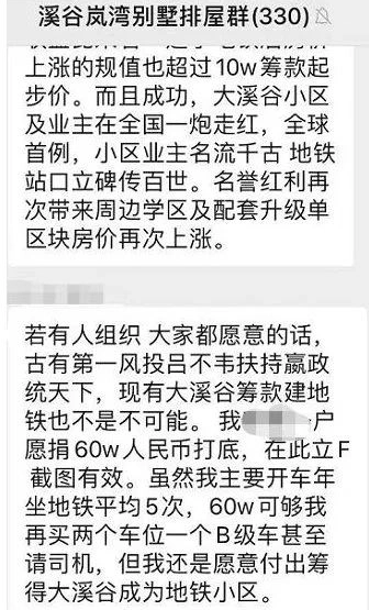 遙想2022年,杭州的土豪業主還想過眾籌地鐵,要讓小區在全國一炮而紅,還有在地鐵口立碑傳世,為了這一“全球首例”,堪比呂不韋扶持嬴政統天下的創舉,倡議人表示願意捐60萬——