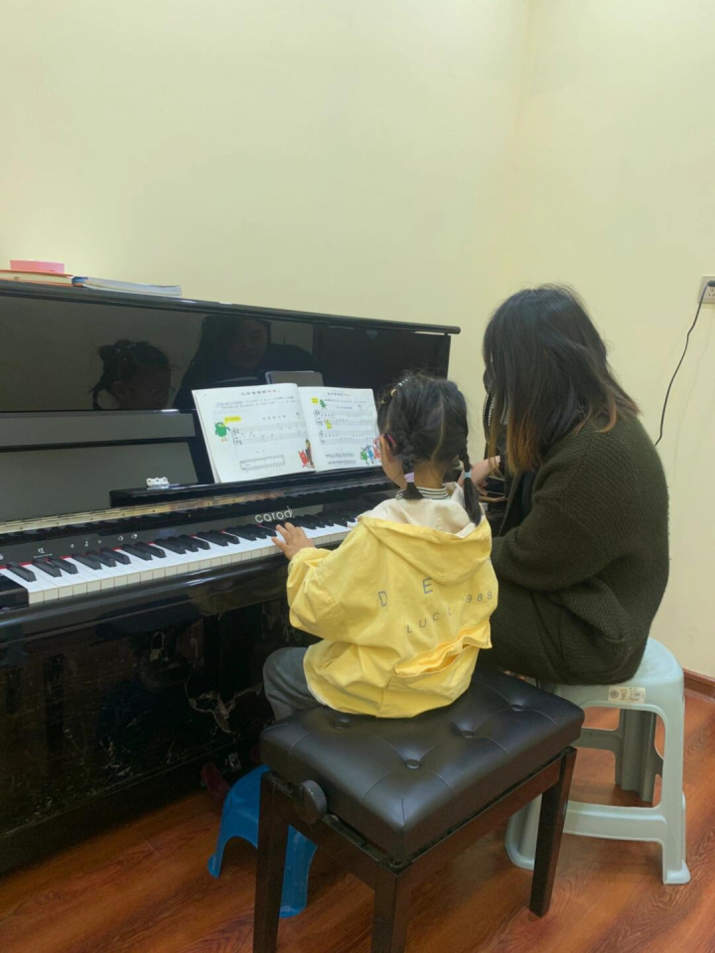 馮雪女兒教小學生鋼琴(受訪者供圖)