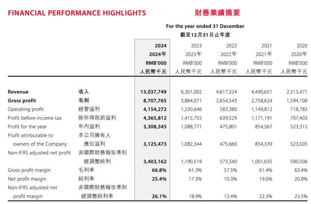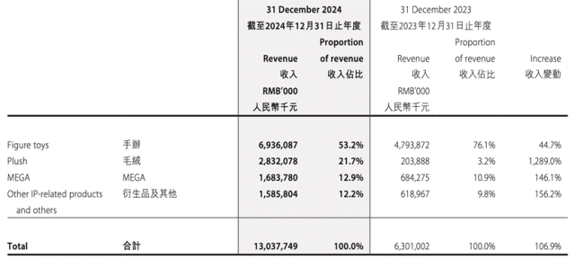 2024年藉助新IP,港澳台及海外的年銷售額達到50.65億人民幣,佔比從2023年的16.9%提高到38.9%。
