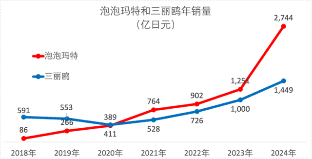 2016年3月,泡泡瑪特成為Molly在中國大陸地區獨家授權經銷商及獨家授權生產商,藉助自身的渠道優勢和生產能力,將盲盒玩法發揮到了極致,特別是“隱藏款”這一大殺器,對盲盒迷們形成了黑洞般吸引力,在獲得授權的早期泡泡瑪特就可以一年賣出幾百萬只Molly盲盒。2023年Molly的銷售突破10億元,2024年突破20億元。
