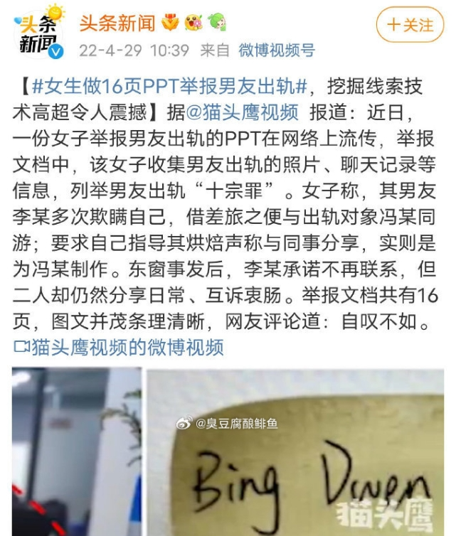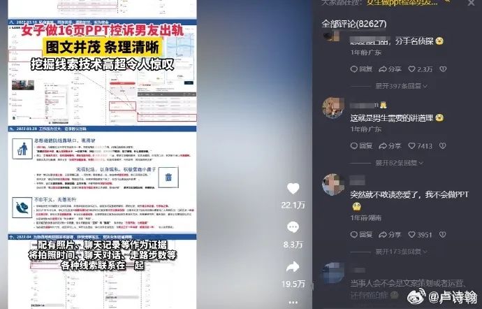 過去幾年,網上關於劈腿,出軌,渣男的舉報層出不窮,各種PPT,PDF也經常衝上熱搜,而許多媒體對此的評價是什麼呢?——製作精美,水平高超。