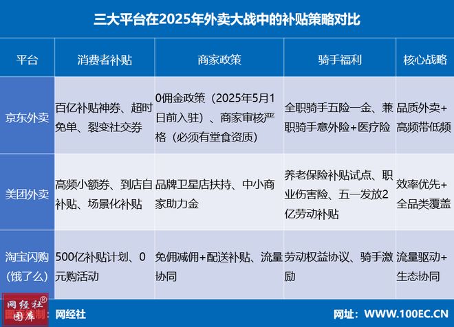 一切的起因還要從今年2月份説起,2月11日,京東推出"全年免佣金"政策和為全職騎手繳納五險一金的舉措,以"品質堂食"為差異化定位,正式宣佈進軍外賣市場。這一戰略舉措迅速引發行業震動,美團和阿里立即跟進。