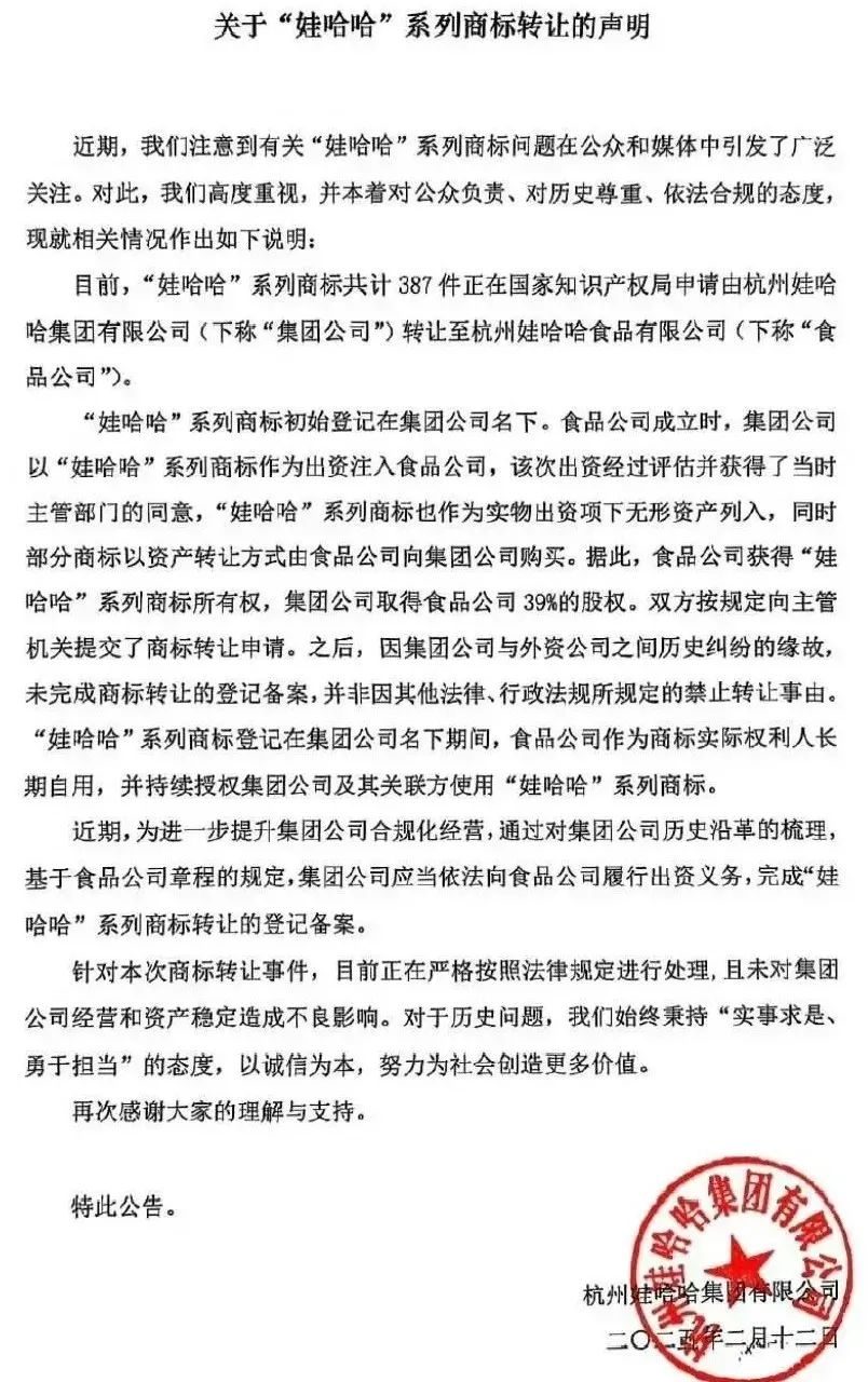 除了前文提到今年杭州國資叫停了商標交易。2023年,宗馥莉曾試圖依據一份1992年的“歷史協議”,將娃哈哈商標直接劃歸宏勝,同樣也被攔下。
