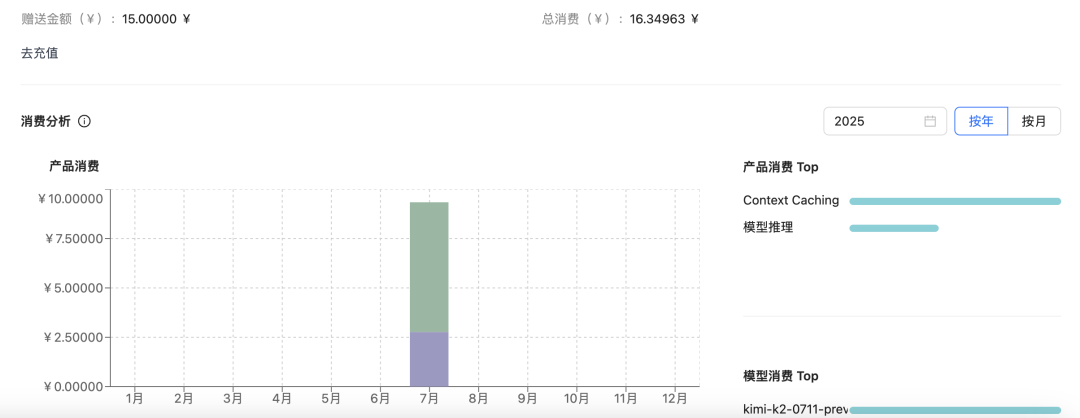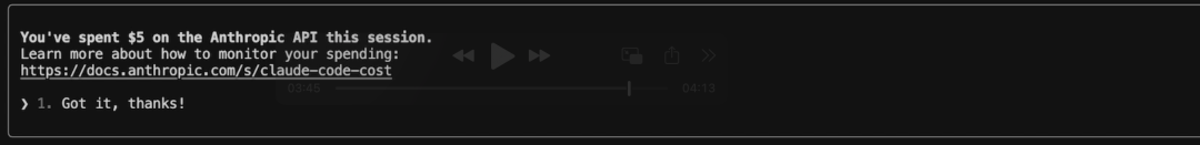 這中間出現了一個很有趣的提示,Claude Code 提示我已經花費了 5 美元,但實際上這是 Claude Code 假設我使用的是 Claude 的模型計算出來的,我這時查看了 Moonshot AI 開放平台的計費統計,發現實際花費還不到 5 人民幣。