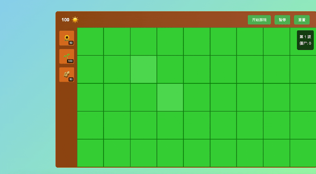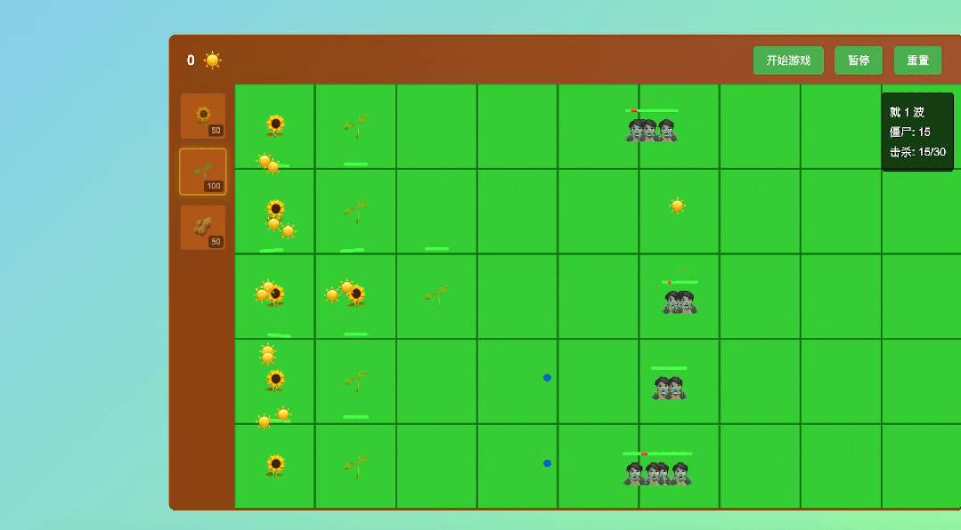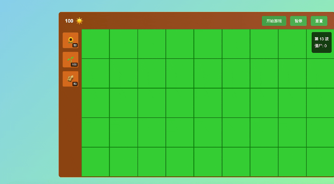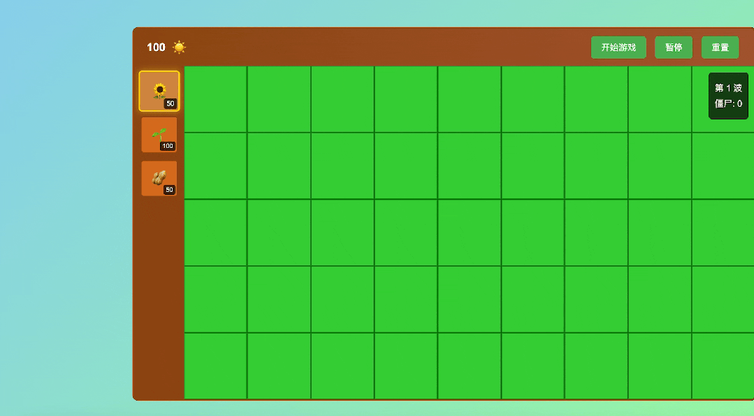 你是一個經驗豐富的前端遊戲開發專家,請從零為我構建一個可在瀏覽器運行的《 植物大戰殭屍 》網頁小遊戲。
