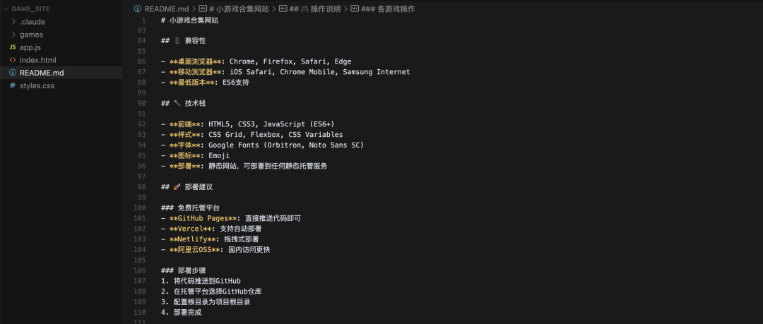 在文件操作方面,Cursor 也幫知危在本地生成了相應的 HTML、CSS、JavaScript 文件,一個不落下,後續想玩只需要本地打開 index.html 文件即可。