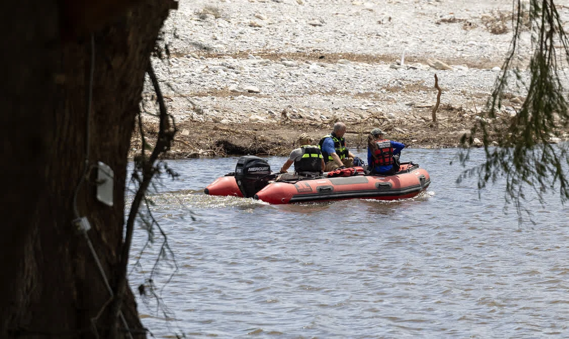 7月11日,救援人員在美國得克薩斯州亨特鎮瓜達盧普河上搜尋遇難者。新華社發(尼克·瓦格納攝)