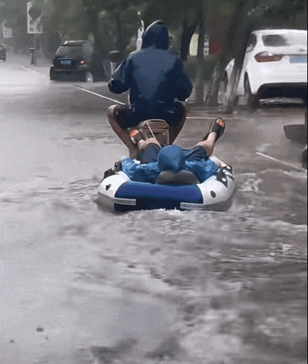 而在天津全民戲水的背後藏着的,是他們鬆弛感的來源,是那套“水來土掩,水大划船”的生活哲學。暴雨讓津城變成了一場全城參與的水上“嘉年華”,讓每個樂在其中的天津人真正成為了“津門擺渡人”。