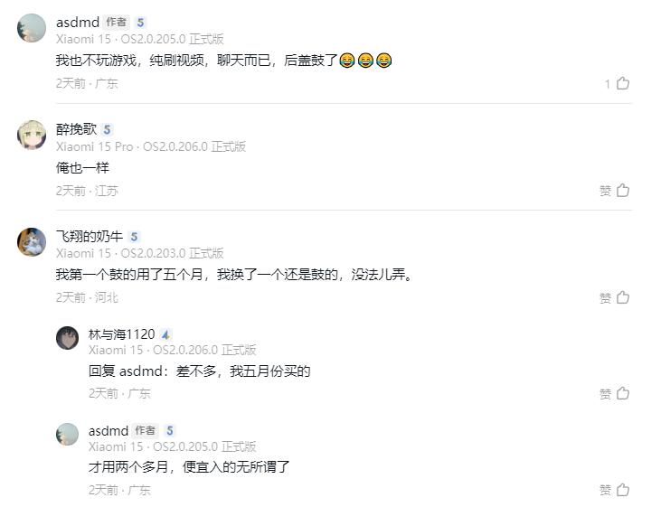 目前在社交媒體上,依舊陸續有網友反饋小米15出現了後蓋翹起的問題,針對此事,小米官方應該儘快做出回應,拿出標準化的售後方案。