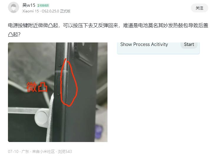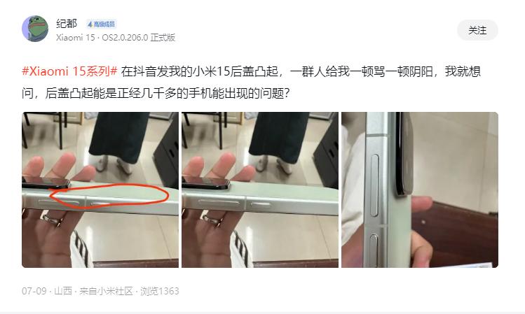 目前在小米社區及社交媒體上,有不少機主在反饋小米15的後蓋翹起問題。