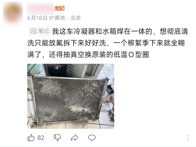 這種情況下開高速開久了,汽車散熱器上就會形成一層楊絮“棉花糖”,堵住散熱。。。