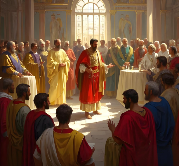 有趣的是,這二人相互指責對方為異端。鬧到這個地步,君士坦丁皇帝認為很有必要出來干預這些爭論了。於是在325年,由他親自主持並參與了尼西亞會議。會上宣告“基督是神”,毫無疑問,阿里烏派受到打擊,後來還被逐出教會。