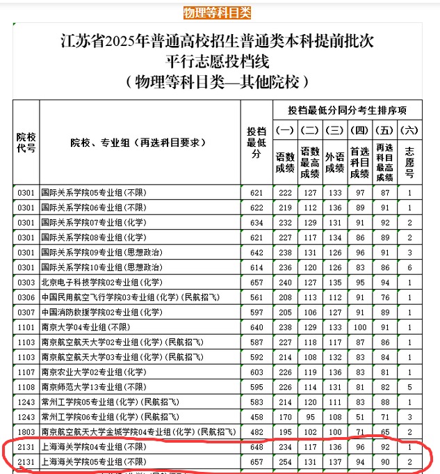 據《財經》雜誌相關文章,日前,江蘇省教育考試院公佈江蘇省2025年普通高校招生普通類本科提前批次投檔線,其中物理等科目類提前批次投檔線顯示,上海海關學院兩個專業組投檔最低分分別是648和657分,遠超部分985、211高校的最低錄取分數線。