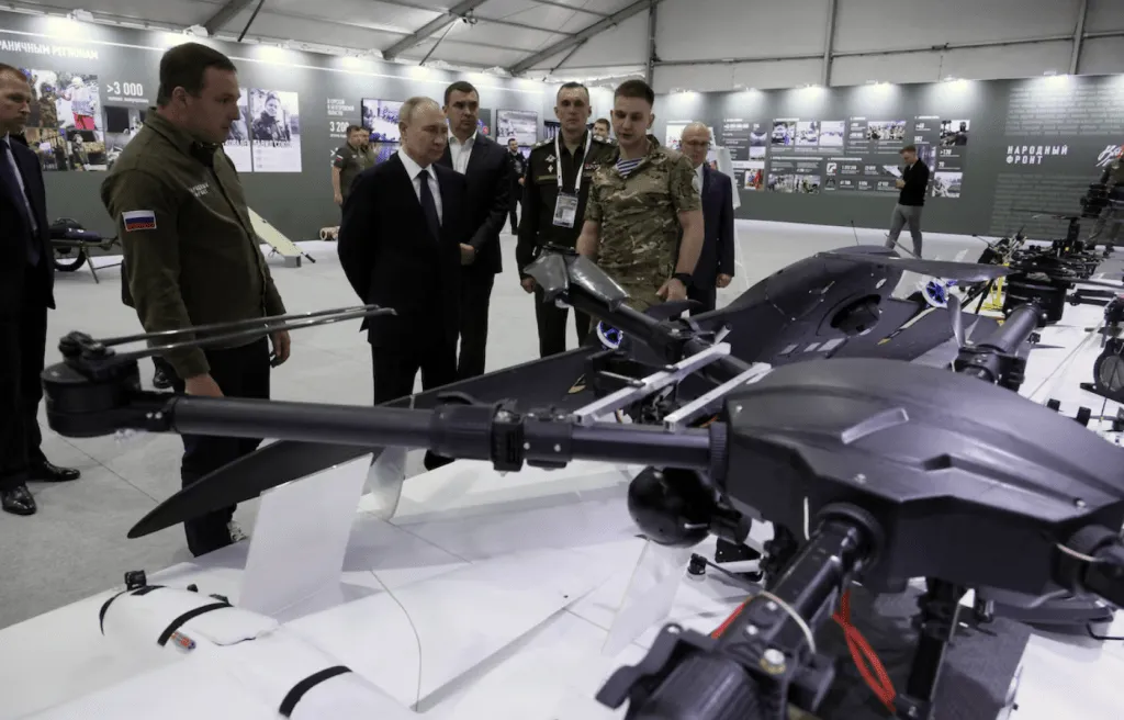 ▲2025年7月6日,俄羅斯總統普京在莫斯科參觀由全俄羅斯人民陣線政治運動組織的軍事硬體件展覽。路透社
