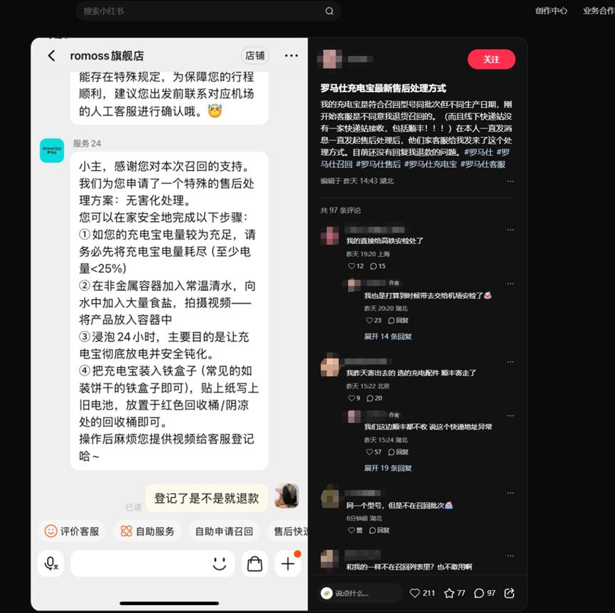 最初,羅馬仕選擇通過“郵寄回收”的方式召回有問題的充電寶。然而,由於被召回的充電寶很大程度上淪為了“定時炸彈”,順豐、京東等快遞公司均拒絕郵寄,消費者退貨受阻。