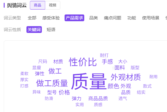 在用户回購原因方面,反饋主要從使用體驗(42%)、外觀材質(19%)、做工質量(14%)、產品性能(14%)與尺碼(11%)5個方面共同構成核心驅動力,其中“手感好、穿戴舒服、外觀材質好”是用户正向產品體驗的主要原因。