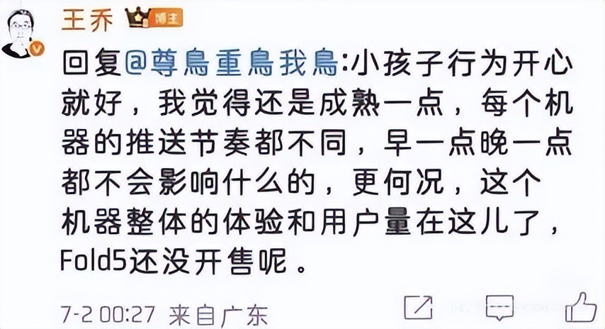 原本是一件小事,卻沒想到vivo 公關總監王喬在其個人微博回應,表示“小孩子行為,開心就好”。