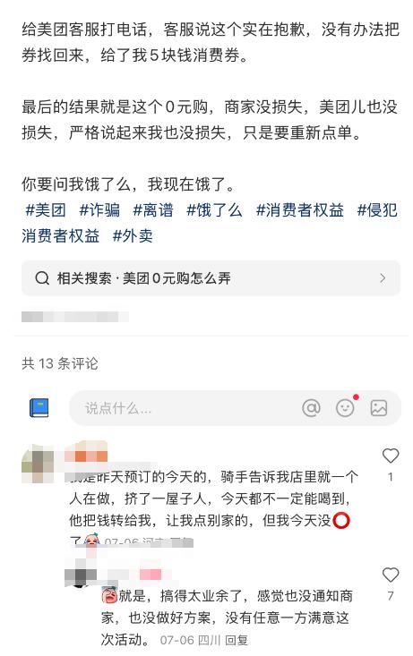 隨着各大電商平台持續加大補貼力度,不少消費者開始在社交平台集中吐槽相關問題。有消費者反映,美團“0元購”存在虛假宣傳:下單後2小時,訂單在未經本人同意的情況下被平台強制取消。這一現象引發網友共鳴,有網友在評論區吐槽平台補貼活動“太業餘”,疑似在未通知商家的情況下擅自開展。