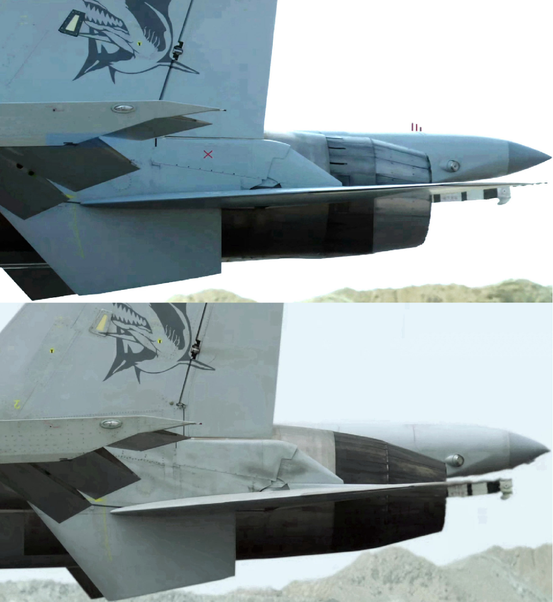 目前,只有一架殲-15T原型機和一架殲-15S雙座機上發現裝配有國產FWS-10H發動機,其餘殲-15系列包括最新生產的殲-15T都是俄式發動機,也就是大約十年前從俄羅斯進口的三姨夫AL31F3海軍型發動機。