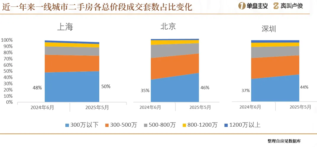可以看到一線城市總價300萬以下的二手房