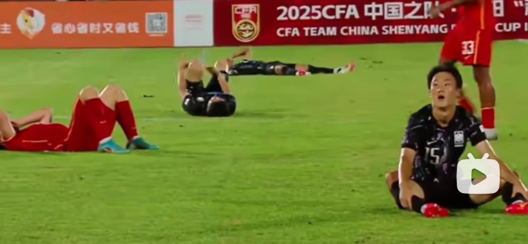 畫面中除了紅衣服的中國小夥子比賽結束之後累倒在地之外,畫面中的所有韓國隊員也全都累倒在地了,能把以體能好著稱的韓國球員累成這個樣子,證明u16足球隊這幫小夥子踢得非常認真,拼得非常努力,這是一場絕對令對方尊重,對雙方來説都是非常有價值的比賽!而不像韓國隊在東亞杯贏了中國隊之後説這場比賽沒有練兵的意義,是沒有什麼價值的比賽,因為贏得太輕鬆了。
