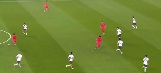 除了中國男子國家隊,我也看了中國u16國家隊的比賽,其中對韓國隊的比賽給我留下了深刻的印象,雖然這場比賽以3:4輸了,但比賽打出了足夠的速度、拼勁這是一場真正的足球比賽,其中的一個畫面令我印象最為深刻:
