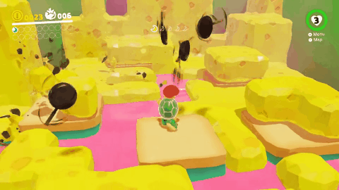 在《超級馬力歐奧德賽》中,也有使用了相似技術的場景,不過可以破壞的物體相對有限