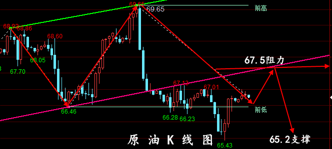 多單策略:建議65.5/65.2區間/分批入場,止損:64.5美元,目標位:67.5美元