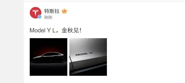36氪獲悉,特斯拉在官微上宣佈,“Model Y L,金秋見”。
