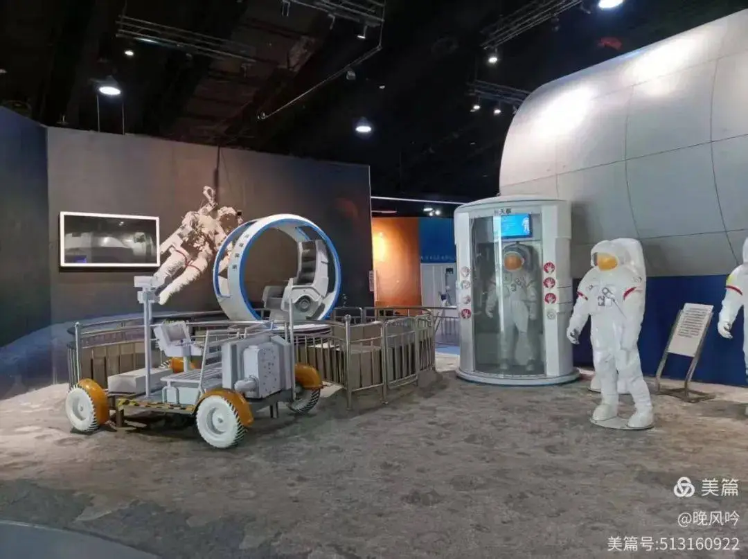 走着走着,又一件展品映入眼簾,它是一個月球車的模型。在這裏,你可以踩在坑坑窪窪的地面上,坐在月球車上,體驗操縱月球車的感覺。