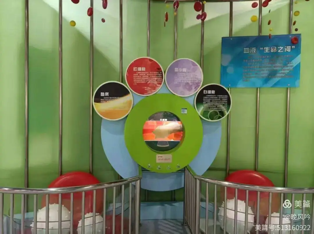 在第二層,有這樣一件展品:它向我們展示了血液的構成,即除了血漿外的紅細胞,白細胞和血小板。它屬於生物學領域的重要發現。