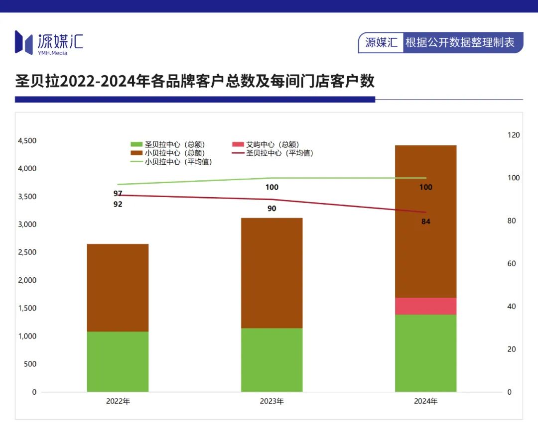 儘管自營月子中心產後護理客户總量有所上漲,但折算成每間門店客户數量後,則有所下滑或滯漲。其中,聖貝拉每間客户數從2022年的92位下滑至2024年的84位,小貝拉則維持在100位左右。