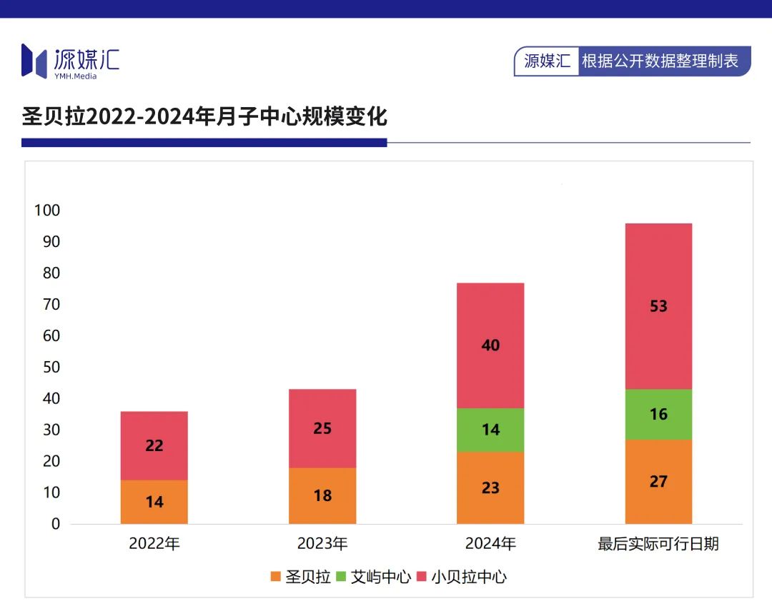 最後實際可行日期,聖貝拉擁有96家月子中心,包括27家聖貝拉、16家艾嶼及53家小貝拉。其中,2024年新增月子中心主要為小貝拉,新增15家;新增聖貝拉5家。