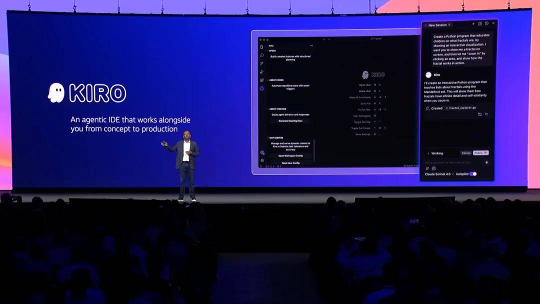 面向開發人員的IDE智能體Kiro,引入了規範驅動的開發,幫助開發者通過自然語言規範和架構圖清晰地表達他們對複雜功能的意圖;內置的智能代理鈎子,可以自動處理生成文檔、編寫測試、優化性能等任務;同時提供了一個專門設計的界面,能夠適應開發者的工作方式,輕鬆掌控開發過程。