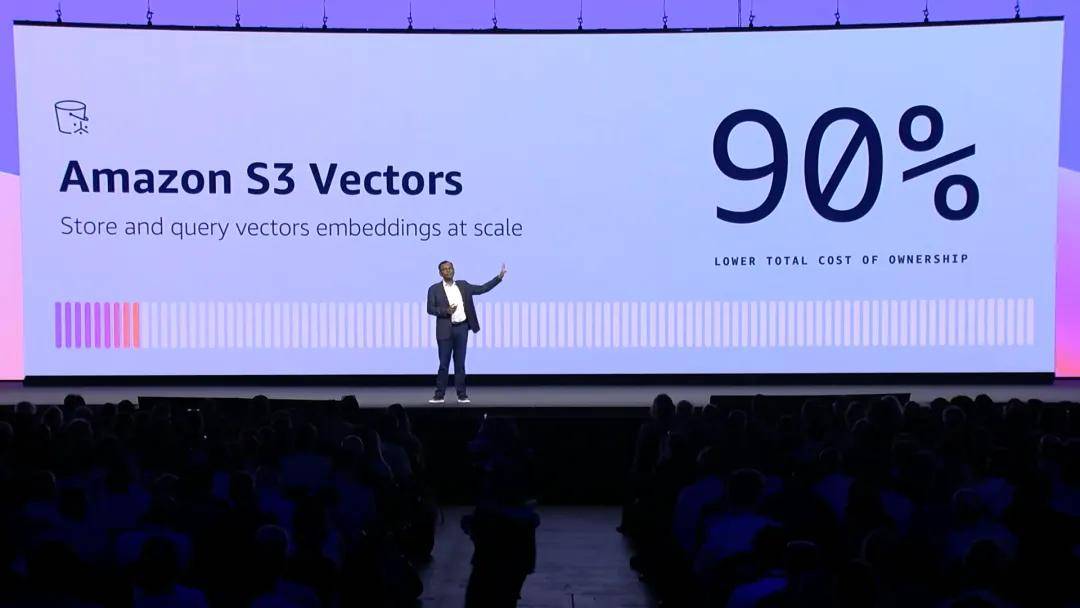 針對向量數據存儲的成本壓力,亞馬遜雲科技推出的Amazon S3 Vectors,最高可節省90%的成本。