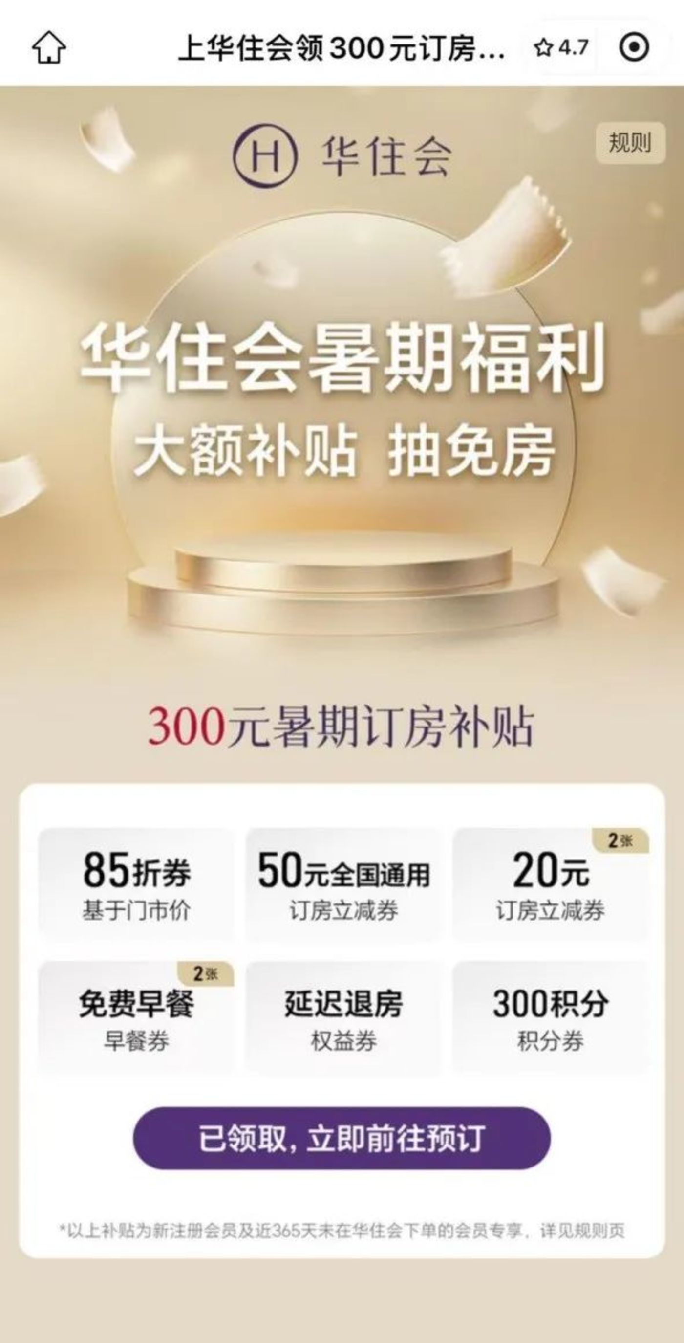除了訂房保障規則外,這個暑期登錄華住會,還可領取最高300元的住房補貼,在該省省該花花的原則下,訂漢庭的理由變得愈發充分。