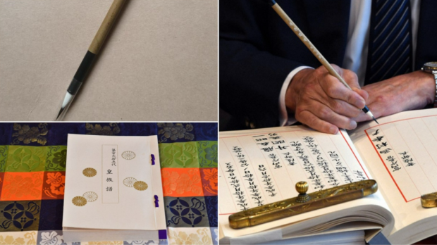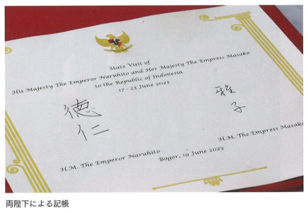 之前,不論是歐洲、中亞或南亞等國造訪,都要在貴賓冊上留言一筆。德仁天皇到此一遊,自然也要留下墨寶,以示“親善”。