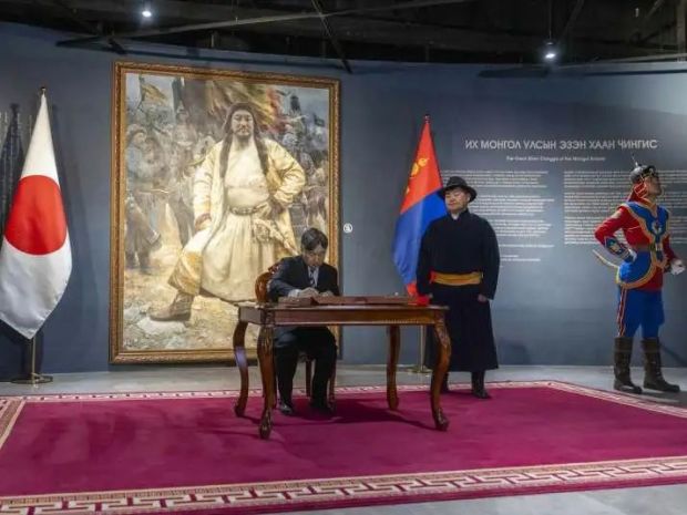 赴蒙古國出訪的外國領導人,有一個探訪頻率很高的“打卡點”,那就是烏蘭託巴的“成吉思汗國家博物館”。而館內必打卡的地方,是一幅巨大的成吉思汗畫像。