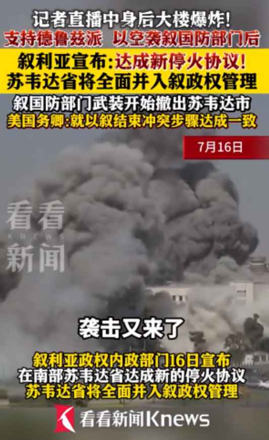 同日,敍利亞國防部宣佈與德魯茲人達成停火協議,將撤出蘇韋達省。但德魯茲人內部意見分化嚴重。德魯茲領導人希克馬特·希吉里則明確拒絕了所謂的停火協議。他發表聲明稱:“我們確認戰鬥將繼續進行,直到蘇韋達省全境獲得解放。”並強調“我們與敍利亞政府之間沒有任何協議、談判或授權。”