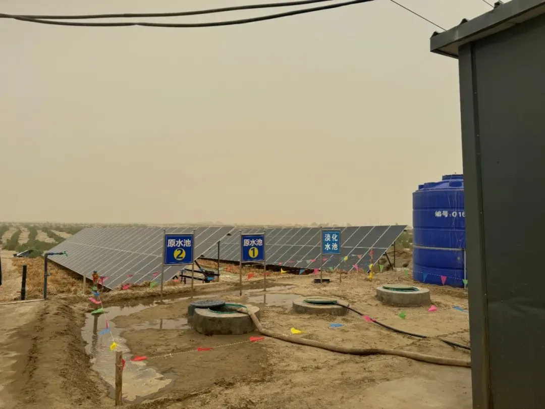 這裏的水多是苦鹹水,不能把經濟作物養活。陳皓天解釋,沙漠裏這種礦化度高的水,類似於鹽水,人類無法直接飲用,它也無法養活經濟作物,必須通過沉澱過濾等程序後去除鹽分。