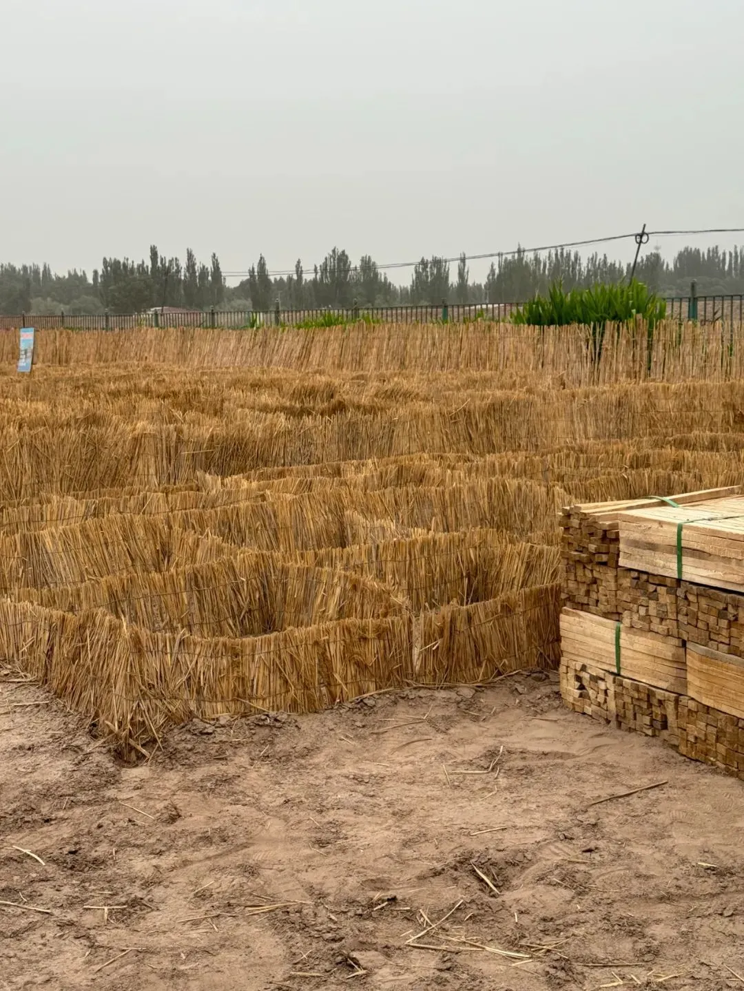 蘆葦加工廠內,用蘆葦杆製成的草方格,廢舊蘆葦成為防沙治沙的新材料