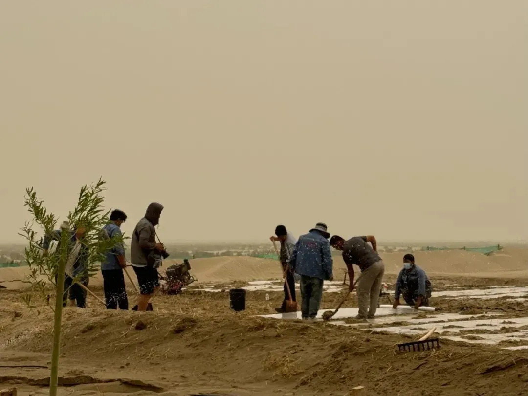 有時,剛種下去的種子或樹苗,次日就被風沙掩埋。剛剛推平的沙丘,一陣風吹過,又重新堆積形成新的沙包。原本好好的根,瞬間“整個吹掉了”,就連埋在地下的種子,也可能直接被掏空,只能反反覆覆補苗,有片沙棗林補了三次苗才活下來。