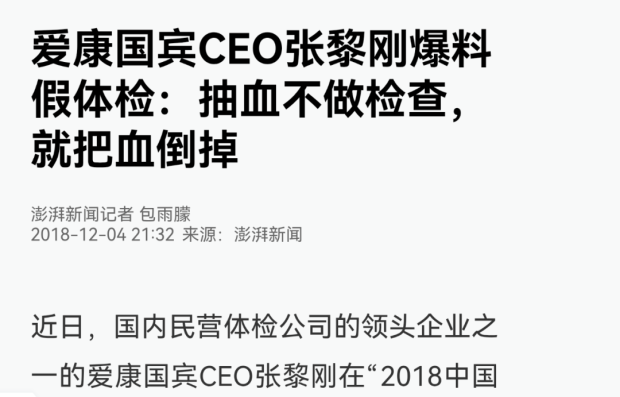 愛康國賓CEO曾揭露行業亂象:同行存在造假行為