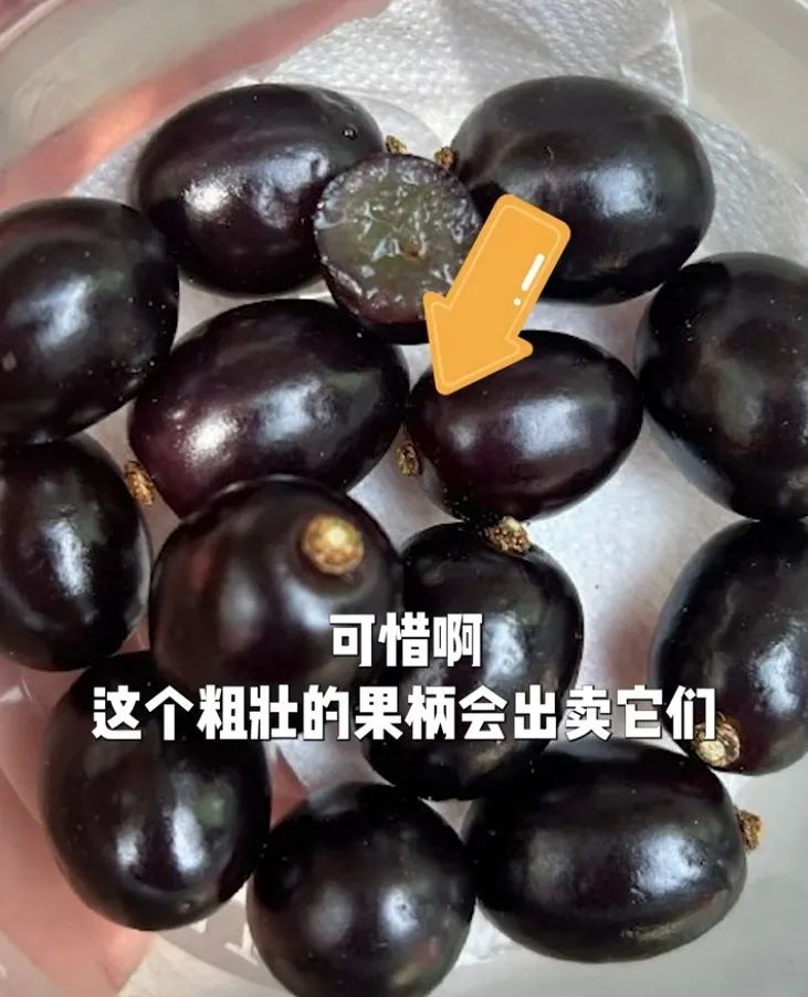 相比嘉寶果,葡萄的果柄更粗壯,實在難以判斷,可以用試吃的方法來辨別,真正的嘉寶果是有籽的,而且籽比較大,如果沒吃到籽或者吃到很小的籽,還伴有熟悉的葡萄味道,就需要及時止損了。