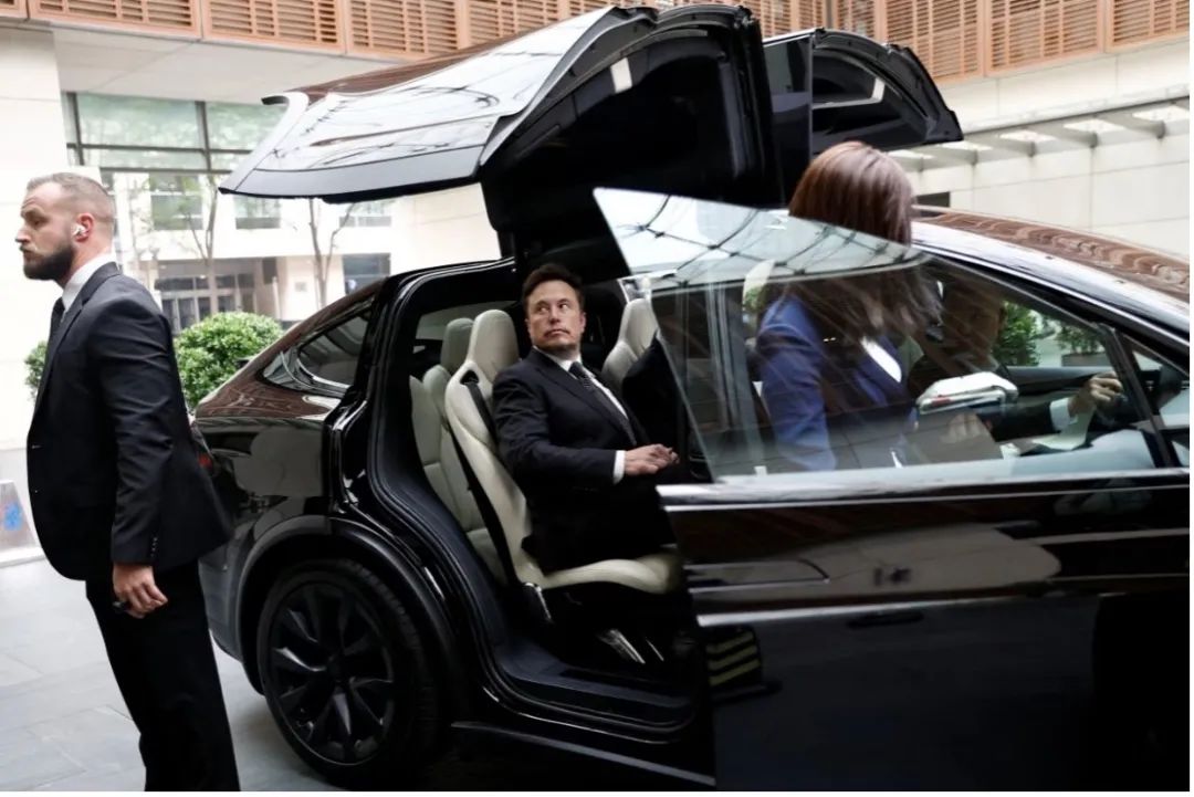 2023年馬斯克乘坐特斯拉離開北京的酒店。圖源:網絡