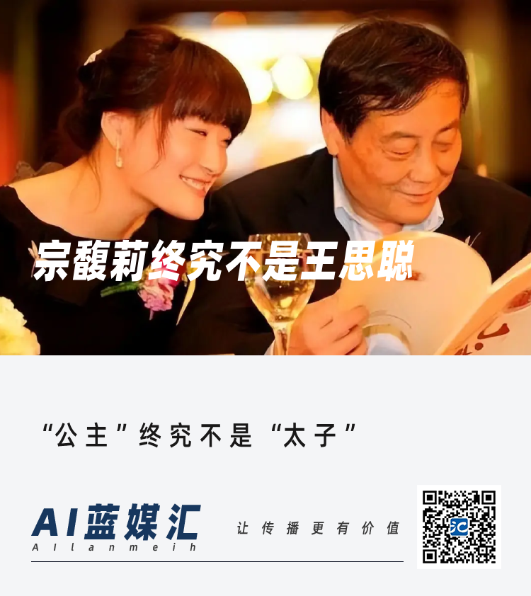 AI藍媒匯曾在一年前寫過《宗馥莉不是王思聰》一文指出,同為企二代、首富二代,又都是市場極其關注的“接二代”,在接班這件事上,王思聰不用爭,想有就能有,伸手就能夠得着。而宗馥莉必須爭,不爭就沒有任何可能。