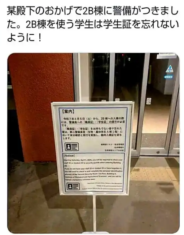 此外,悠仁親王就讀的生物學院和生命環境科學學院所在的大樓,也是開啓了嚴格進出限制。