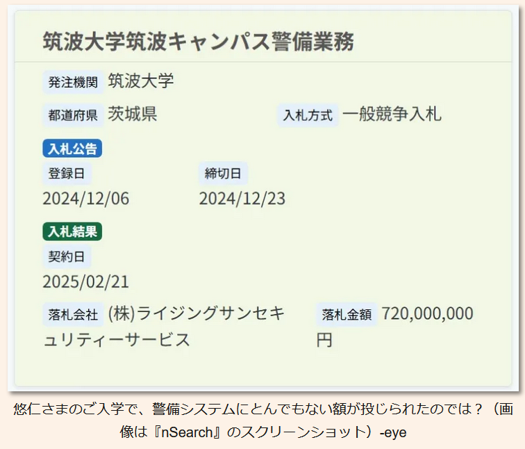 近期,日本一高等學府公佈的財政預算引發大家關注,日本國立大學筑波大學在2025年2月21日增加了校園內安保業務預算,費用高達7億9200萬日元。