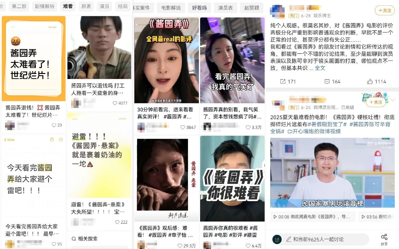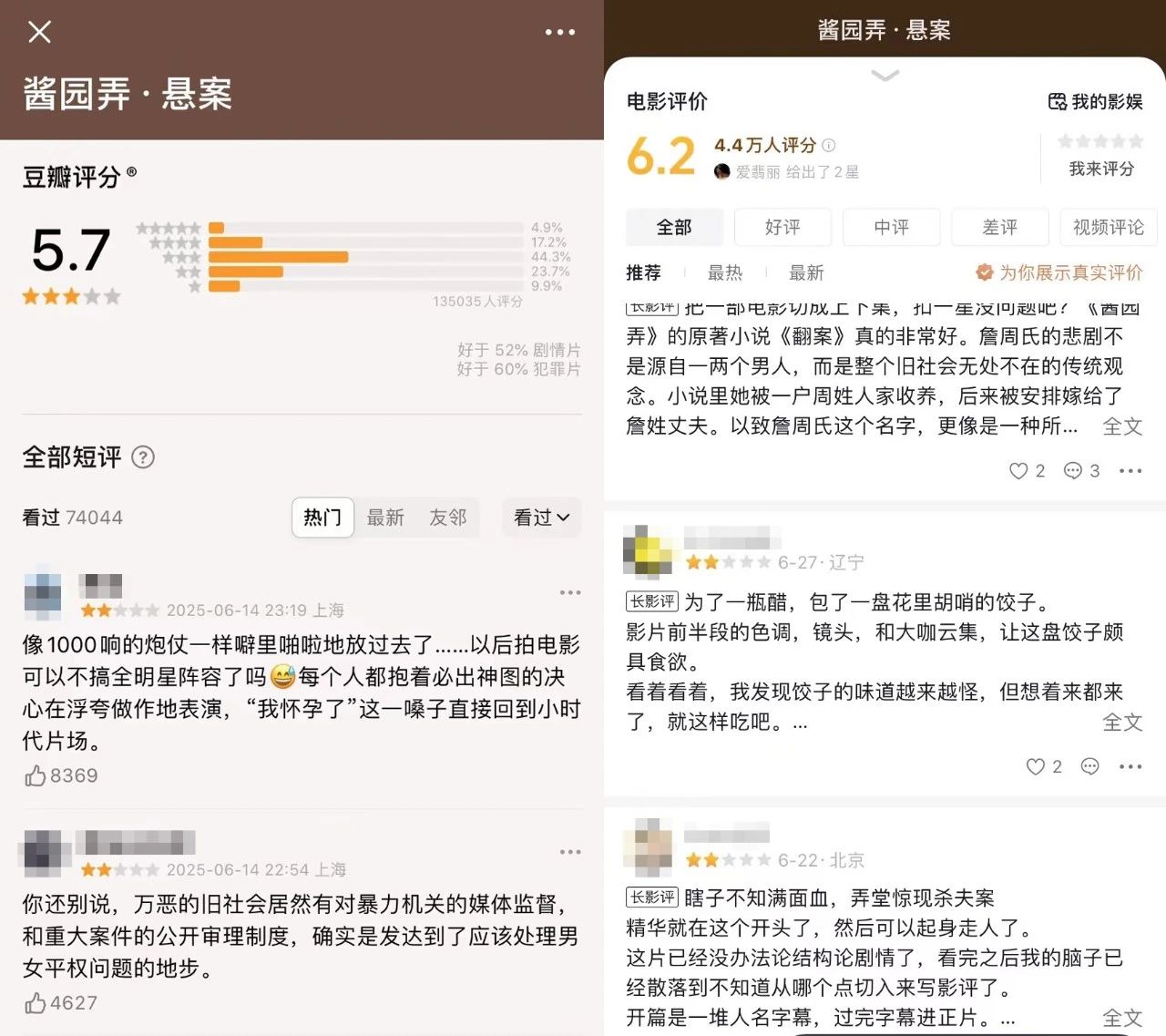 當然,《醬園弄·懸案》引發的另一個現象更值得行業深思,那就是近乎在所有社交媒體上“博主批評《醬園弄·懸案》成為某一種政治正確”,無論該博主有沒有看過電影,也不管博主的身份是什麼,都要跟風湊上熱度、拿出類似的看法去拍個視頻評價一下《醬園弄·懸案》,這個現象值得警惕,其背後也進一步在表明觀眾對於某類操作的國產電影的不信任,甚至在形成某種難以根除的刻板印象,也算得上情緒的“變種”。
